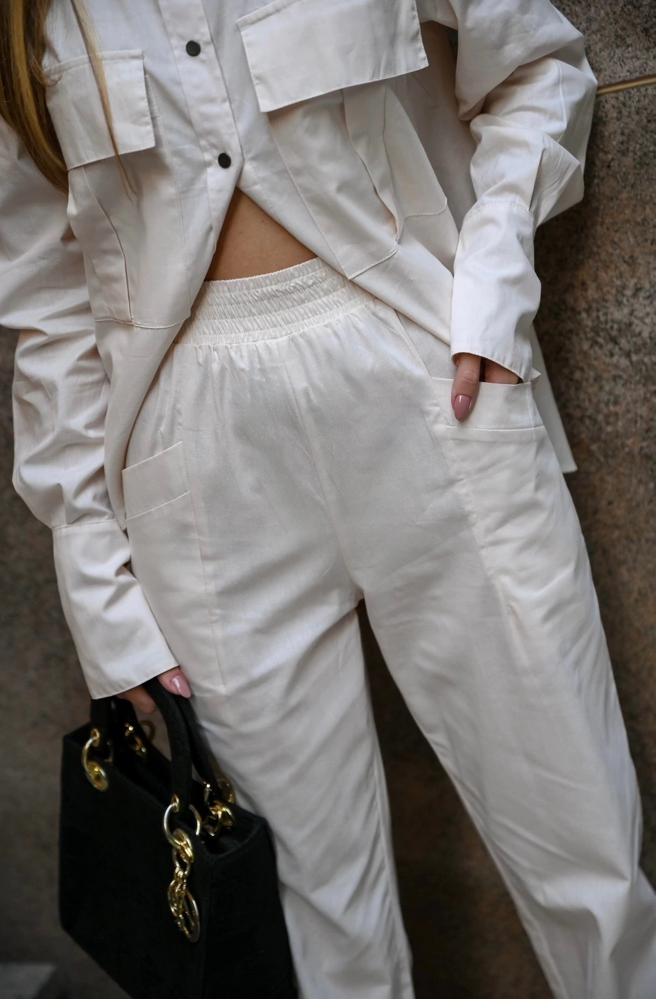 Este conjunto é a combinação perfeita entre o estilo utilitário e a sofisticação moderna. Confeccionado em tricoline, um tecido leve e de caimento estruturado, ele garante conforto e elegância para o seu dia a dia.